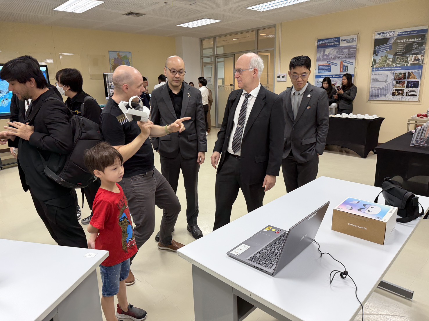 During the session, Prof. Unalome Wetwatana Hartley, head of the CATRE laboratory, presented notable research achievements, highlighting advancements in engineering innovation. The program also featured an immersive Virtual Reality (VR) platform simulating a chemical laboratory, offering participants a hands-on digital experience. This demonstration illustrated the potential of VR to enhance education, training, and research capabilities.