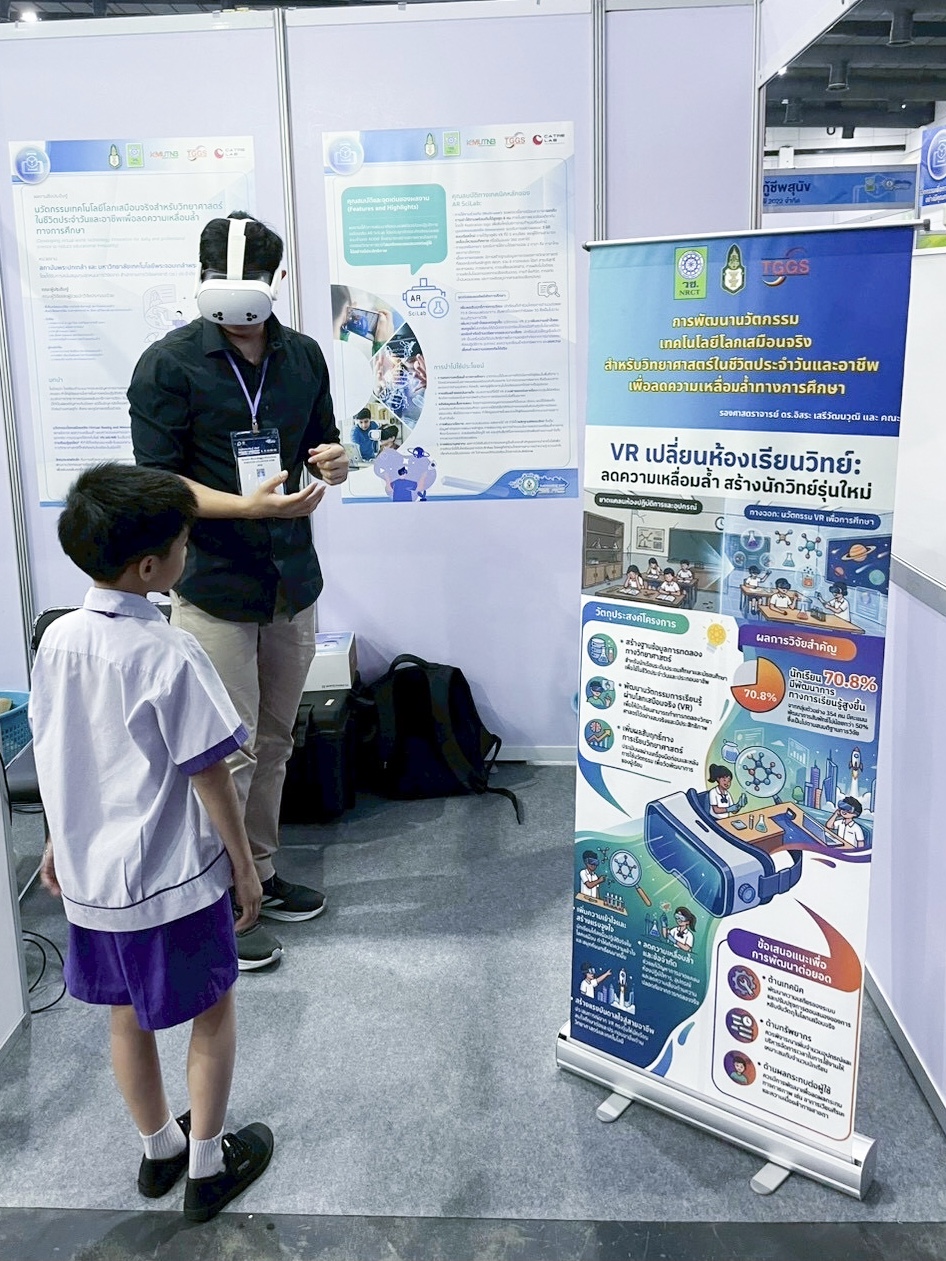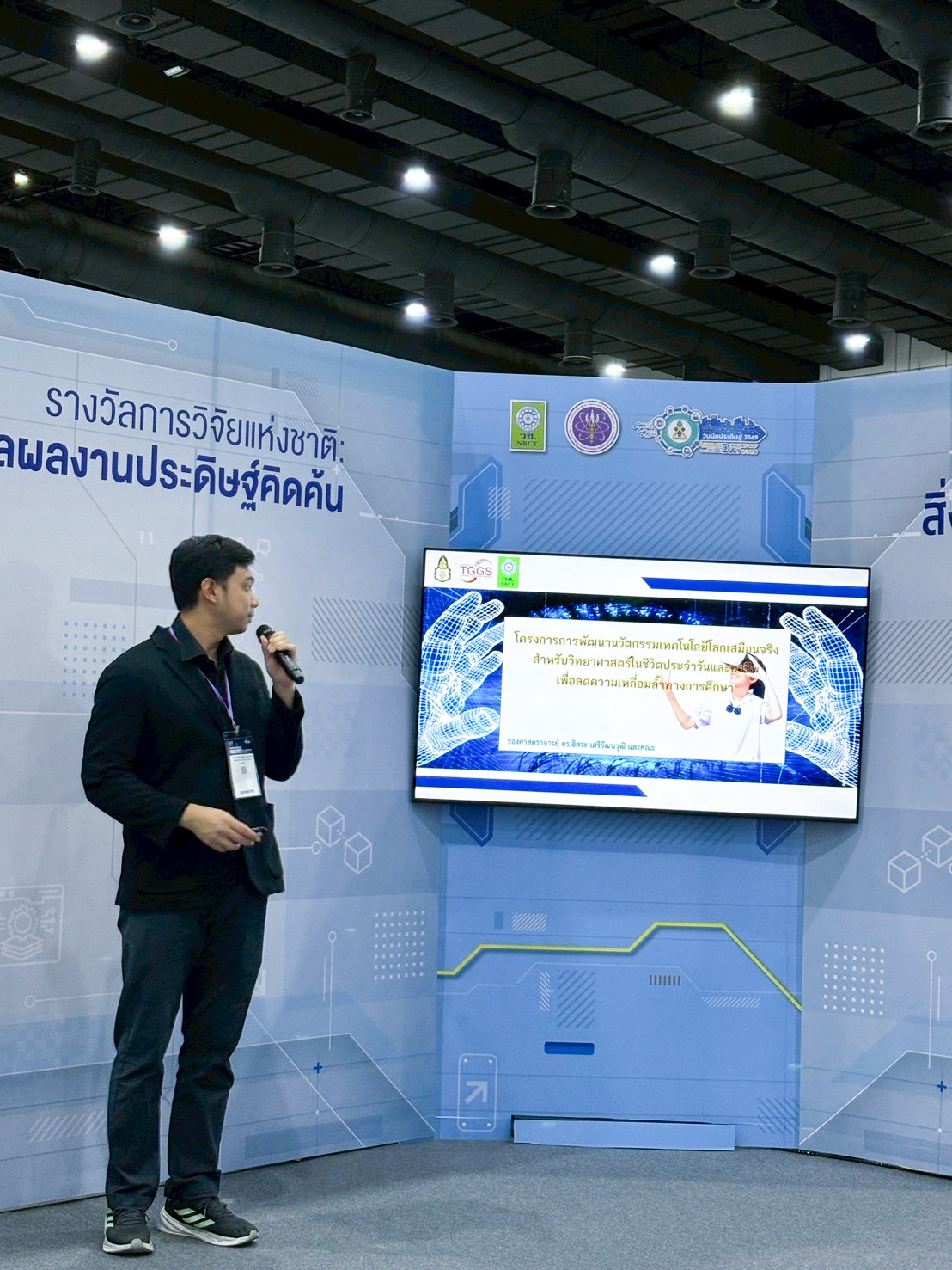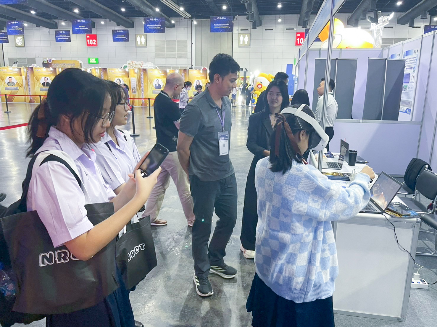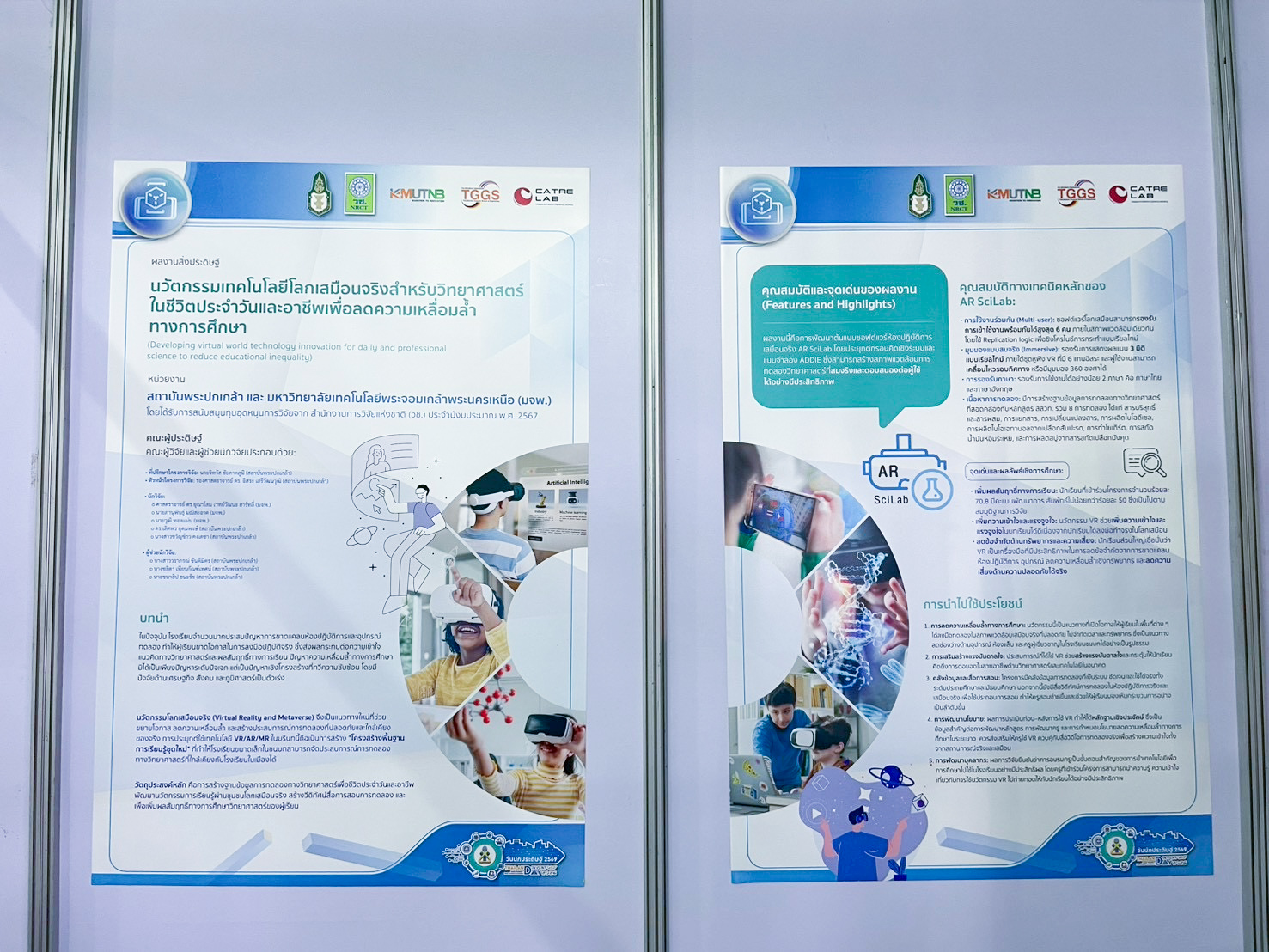 At the event, researchers from the CATRE laboratory presented ARSciLab, a bilingual (Thai–English) mixed reality application designed to enhance science learning through virtual experimentation. The platform serves as a virtual science environment for everyday life and professional applications, aiming to address the shortage of laboratory facilities in educational institutions by enabling immersive and interactive learning experiences. The project is funded by the National Research Council of Thailand and is conducted in collaboration with the King Prajadhipok’s Institute.